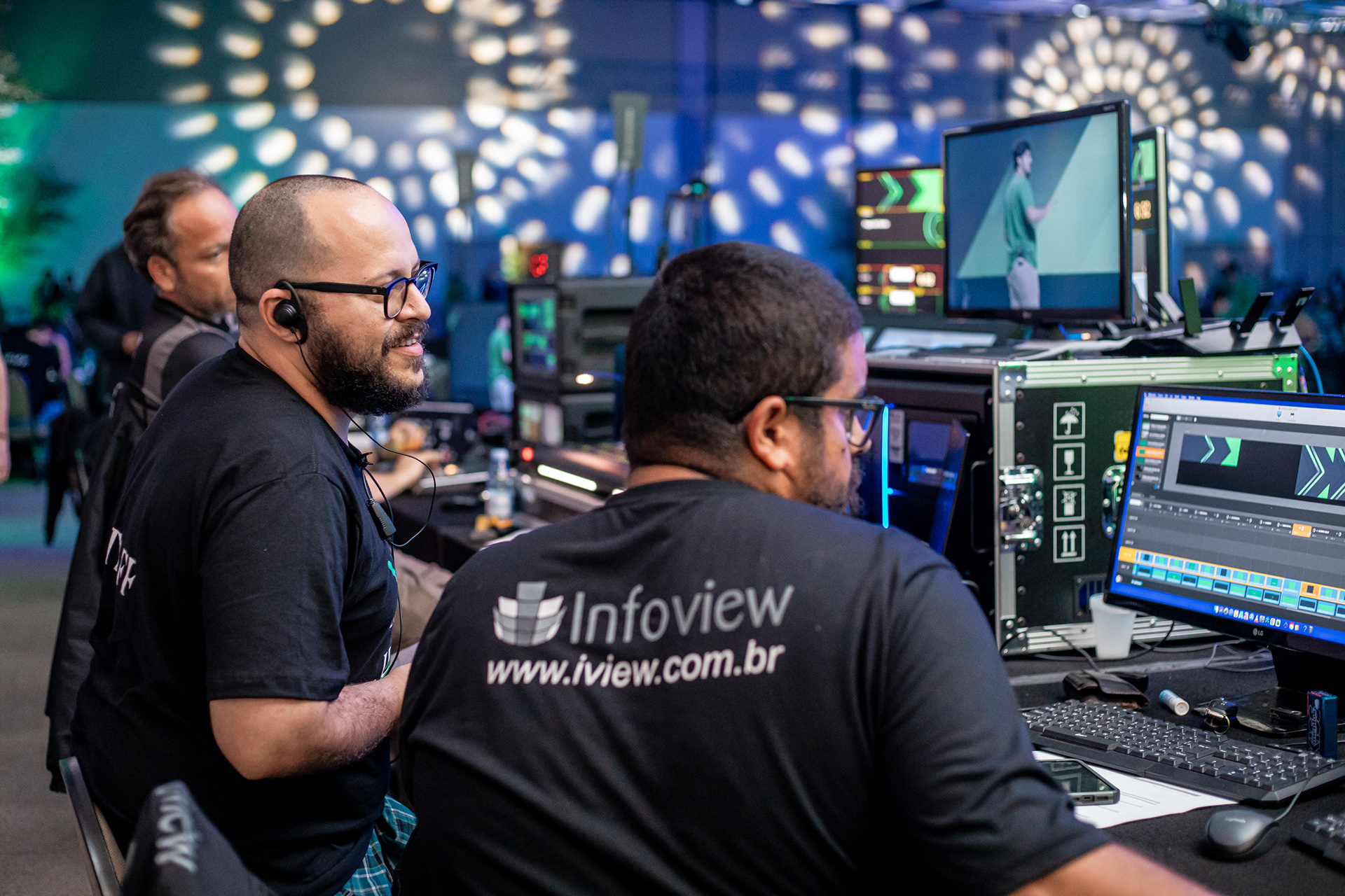Minha função era participar da criação e supervisionar a produção de identidade visual, vídeos, vinhetas e cartelas, garantindo o funcionamento das mídias e conteúdos exibidos durante o evento